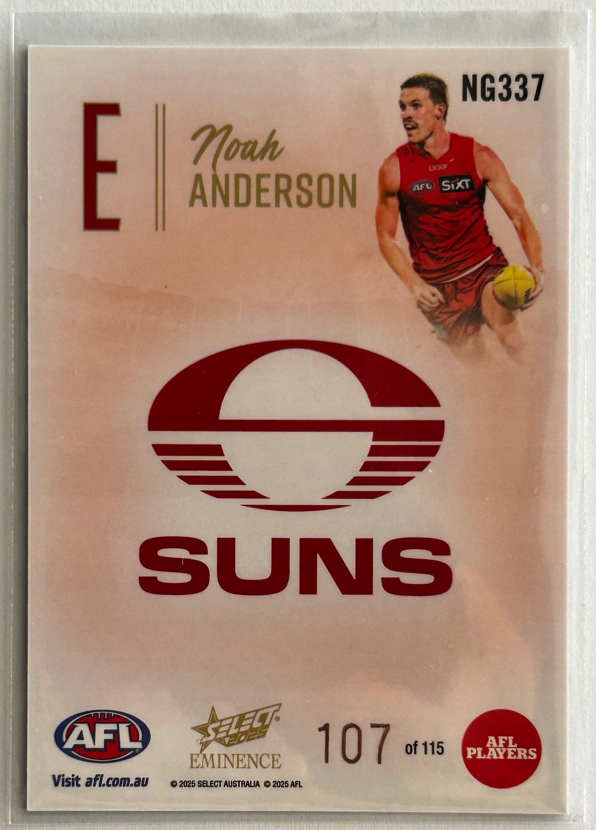 2025 AFL Select Eminence - NOAH ANDERSON (GOLD COAST SUNS) Nameplate Gold 'E' /115 NG337