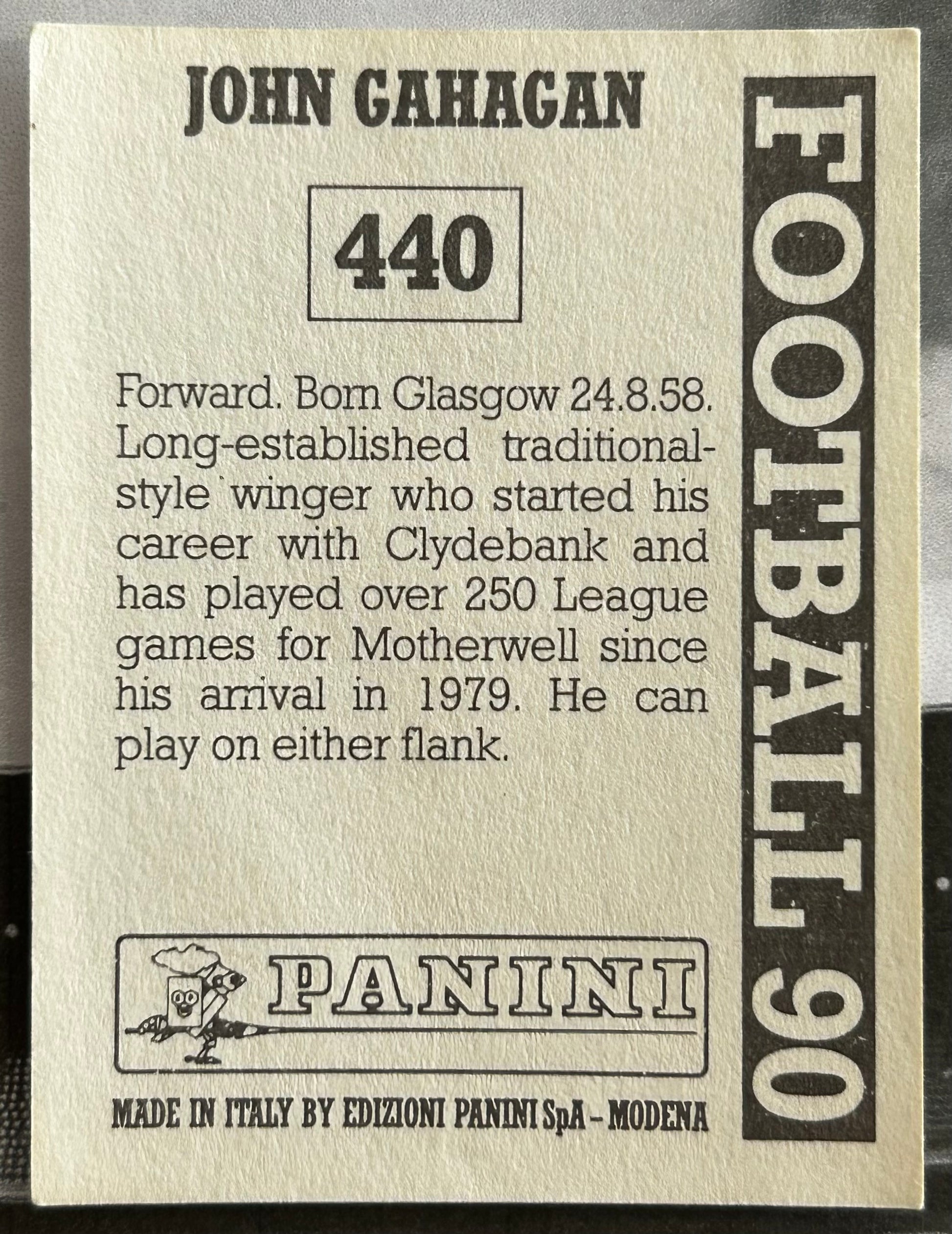 Panini Football 90 Sticker - JOHN GAHAGAN (MOTHERWELL) #440